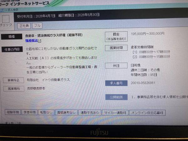 詳細はハローワークインターネットサービスに、求人票を掲載しています。